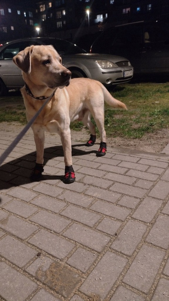 Buty bardzo dobre. pies szybko się zaadoptował. Na labradora 35kg pasują w rozm. 6 Pies ma uczulenie na grzyby (gnijące trawy itp) i to jedyne rozwiązanie aby chronić łapy i nie obciążać psa sterydami. Trzeba dobrze wsunąć łapę psa i śmiało zaciągnąć rzepy. Nie spadają.