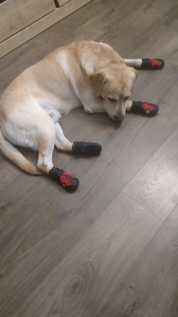 Buty super, pies chętnie w nich chodzi, spełniają swoją rolę. Jednak podczas dużej ulewy, lub dłuższego spaceru w mokrej trawie buty nieco przemakają.