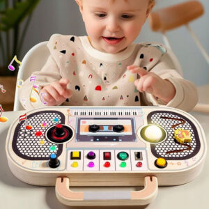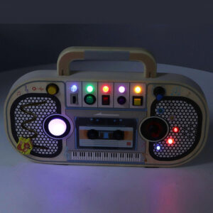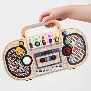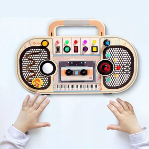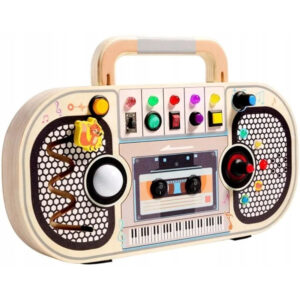Ten drewniany magnetofon dla dzieci to idealna propozycja dla maluchów, które lubią muzykę, kolory i interaktywną zabawę. Został zaprojektowany tak, by rozwijać koordynację, zmysł słuchu i ciekawość świata poprzez dźwięk i światło.
