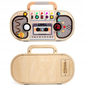 Ten kolorowy magnetofon z drewna to edukacyjna zabawka, która łączy muzykę, światło i naukę przez zabawę. Dzięki prostym przyciskom i przyjaznemu designowi rozwija zmysły i koordynację dziecka.
