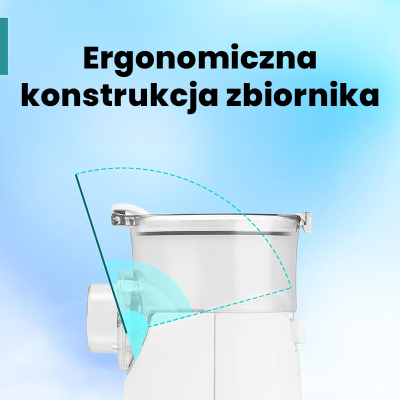 Nebulizator został zaprojektowany tak, aby ułatwić codzienne utrzymanie czystości i zapewnić bezpieczne użytkowanie przez całą rodzinę.