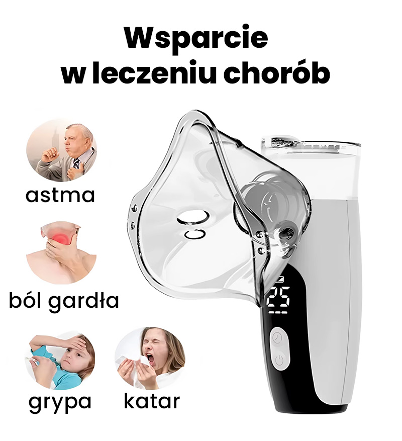 ✅ Dla seniorów – prosty w obsłudze i lekki, zapewnia komfort podczas regularnych inhalacji.