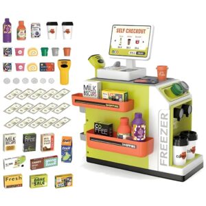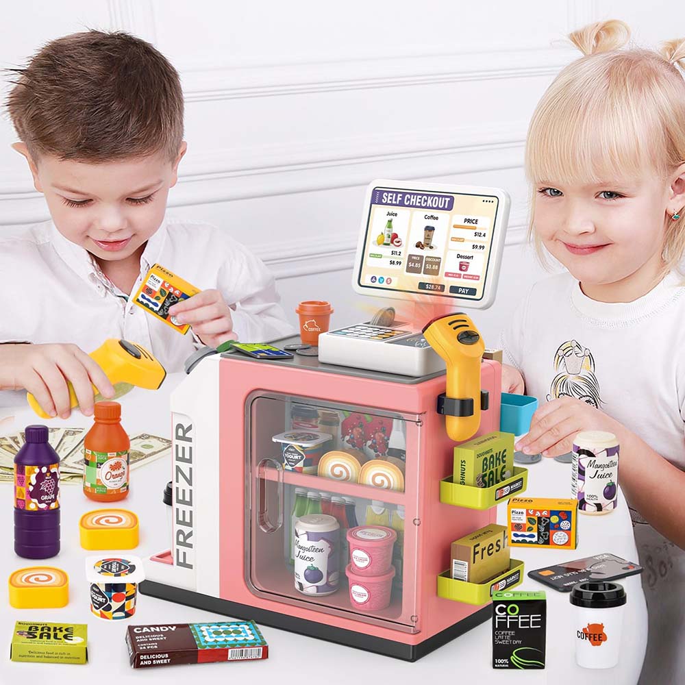 Kasa została wyposażona w obracany ekran 360°, podświetlane przyciski oraz realistyczne dźwięki skanowania i płatności. Dzięki temu dziecko może wczuć się w rolę kasjera, naciskać przyciski, „pobierać opłaty” i obsługiwać klientów jak w prawdziwym sklepie.