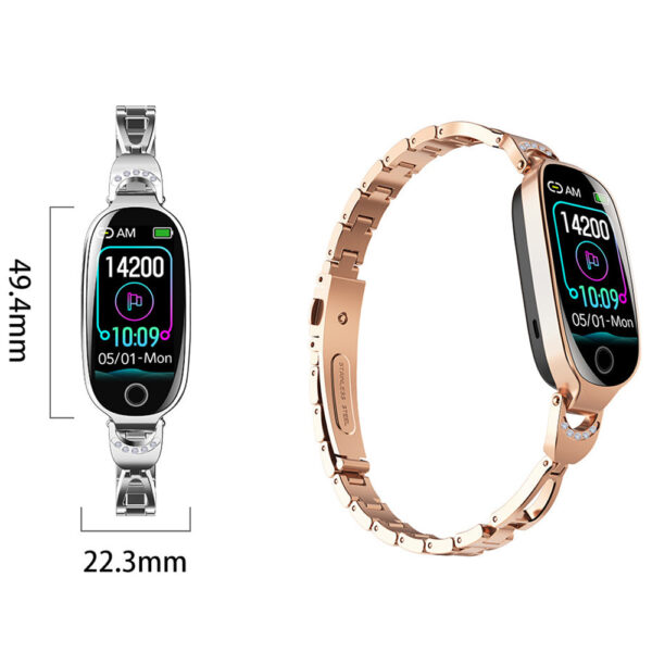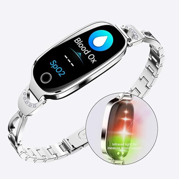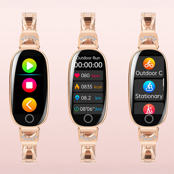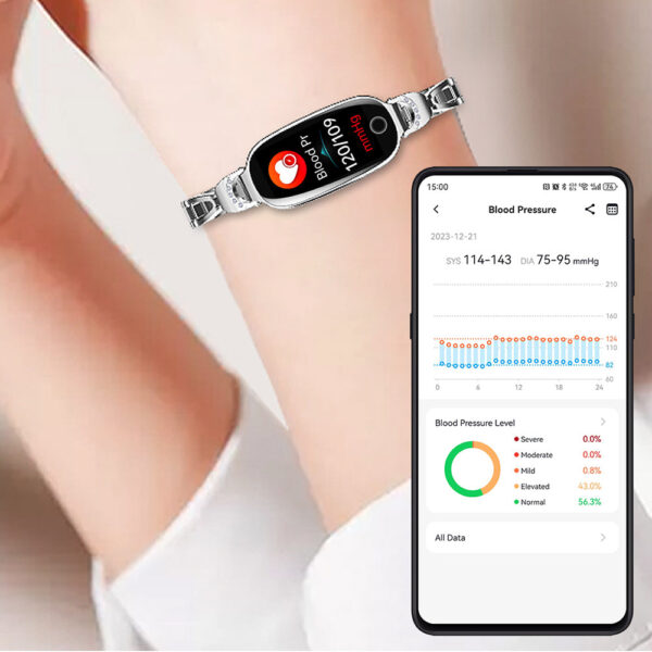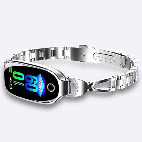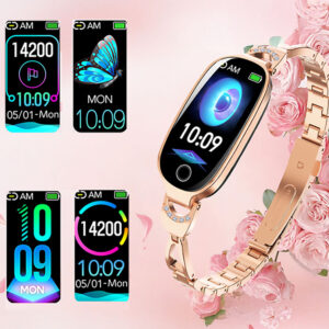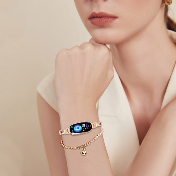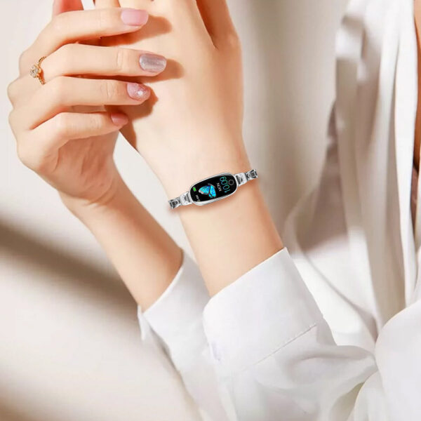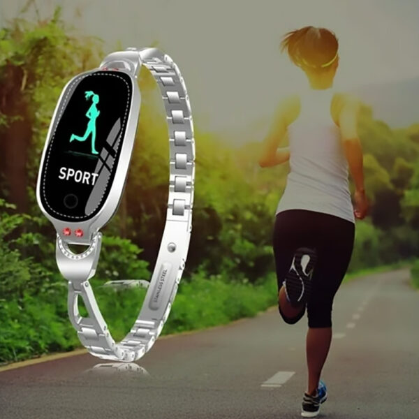 Ten zegarek powstał z myślą o kobietach, które chcą połączyć technologię z elegancją. Dzięki metalowej bransolecie o lśniącym wykończeniu prezentuje się jak stylowa biżuteria, a jednocześnie zapewnia wygodę i praktyczność na co dzień. Sprawdzi się zarówno podczas spotkań biznesowych, w pracy, jak i w trakcie treningów czy spacerów.