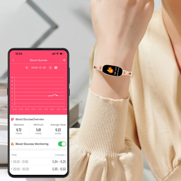 Smartwatch umożliwia bezinwazyjny pomiar poziomu cukru we krwi, dzięki czemu możesz śledzić swoje wyniki bez nakłuć i dyskomfortu. To szybki sposób na monitorowanie zdrowia każdego dnia.