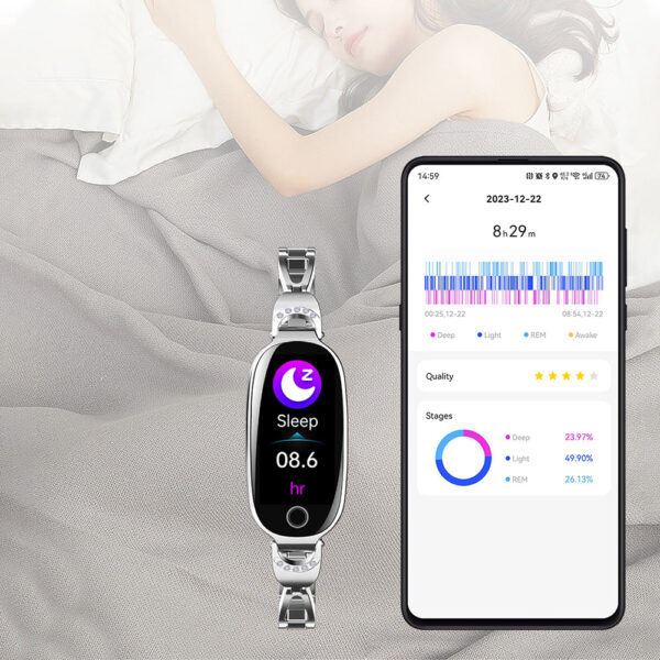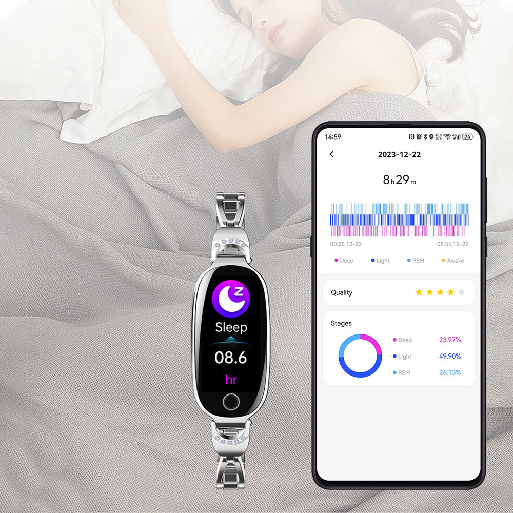 ✅ Analiza snu – dokładny podział na fazy snu i raporty w aplikacji.